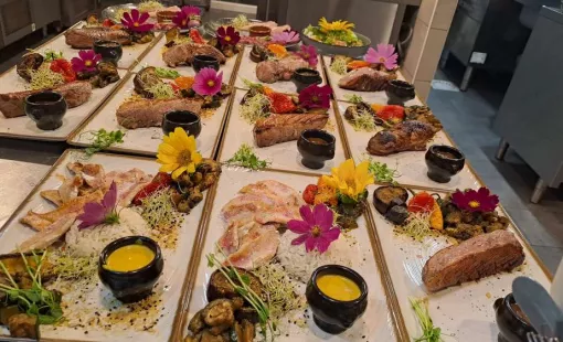 Envie de retrouver notre cuisine locale et savoureuse chez vous ou dans un autre lieu de réception ? Notre service traiteur vous propose des menus sur mesure, préparés avec passion à partir de produits de saison issus de notre terroir. Pour un événement gourmand où que vous soyez.
